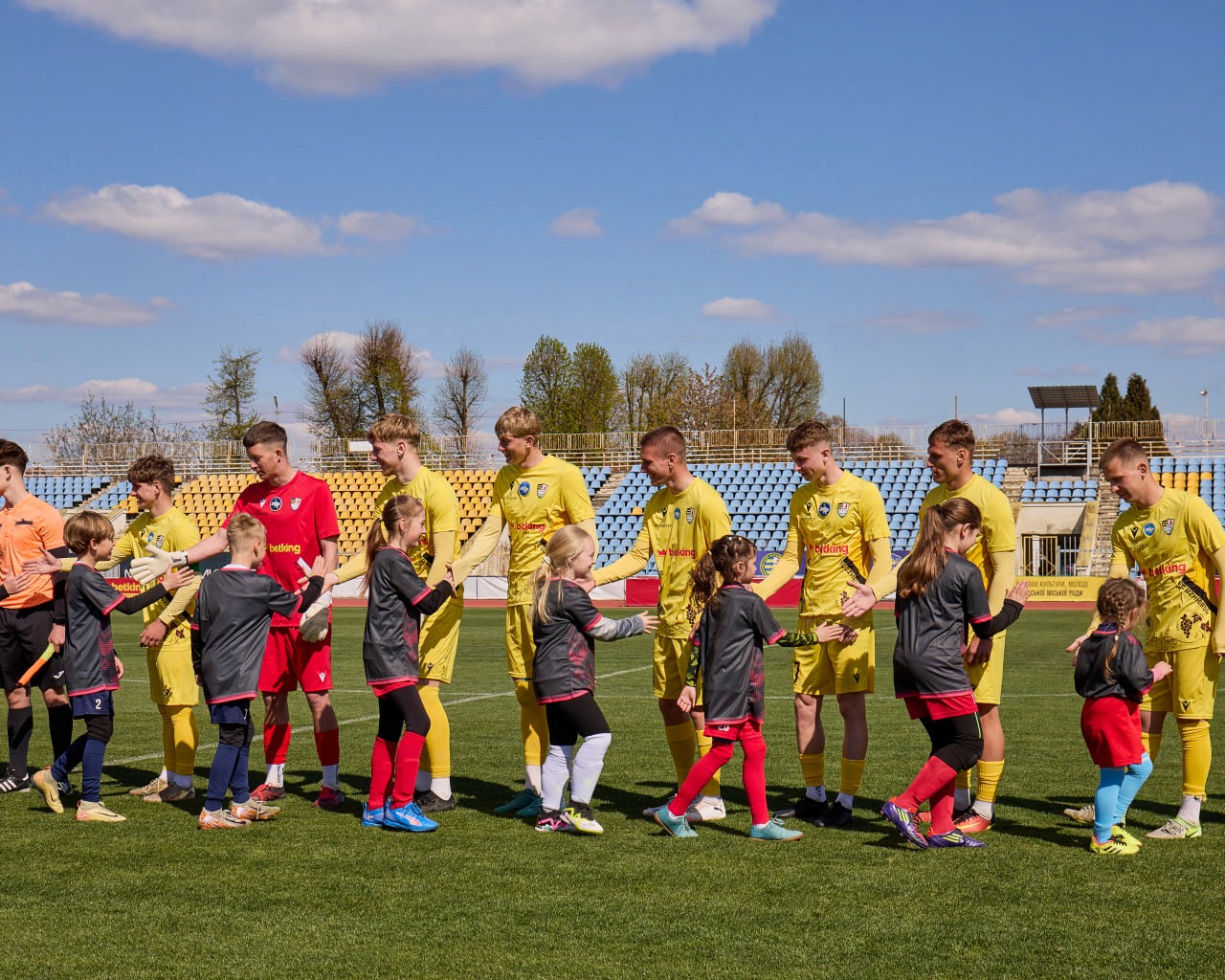 Особлива атмосфера запанувала на «Авангарді» ще до стартового свистка. Футболісти розминалися разом із дітьми без поділу на ролі чи команди.